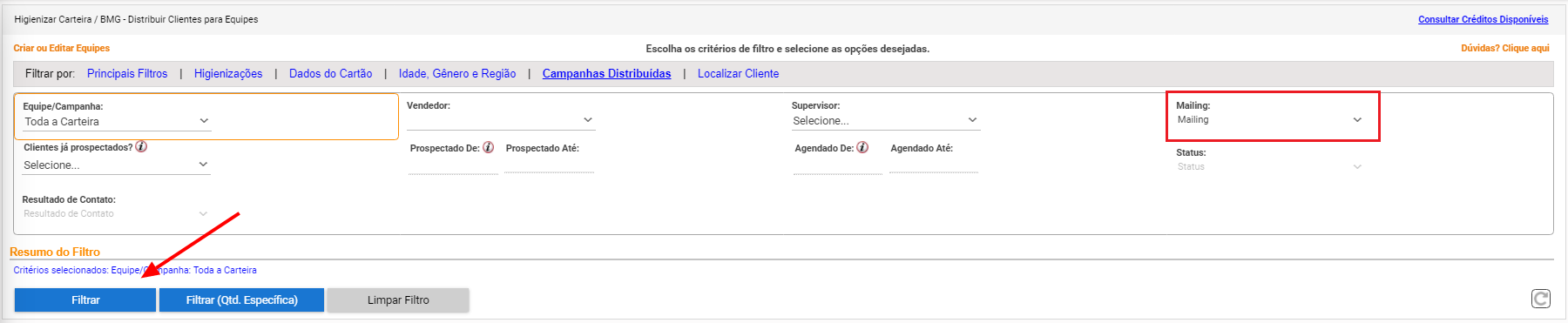Nesse caso, no filtro de CAMPANHAS DISTRIBUÍDAS e informe no campo MAILING aquele que será distribuído.