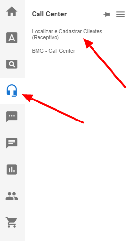 Para localizar então um cliente na sua carteira, acesse o menu CALL CENTER > LOCALIZAR E CADASTRAR CLIENTES (RECEPTIVO)